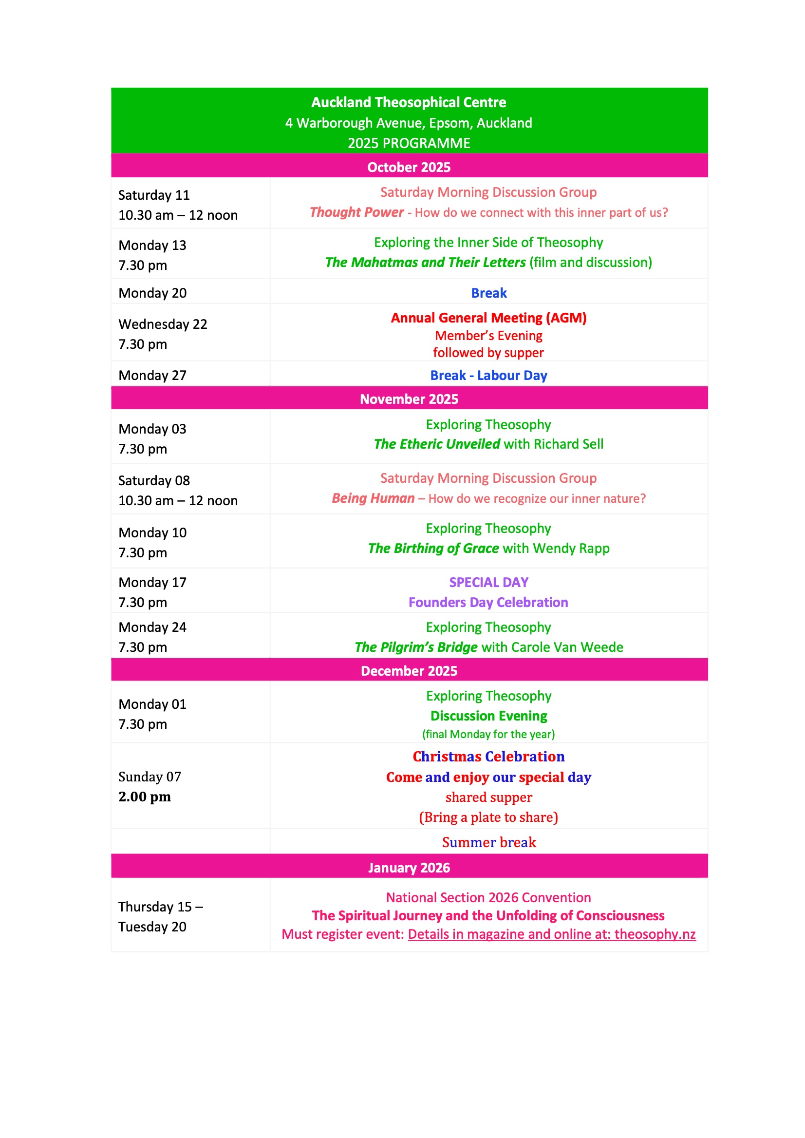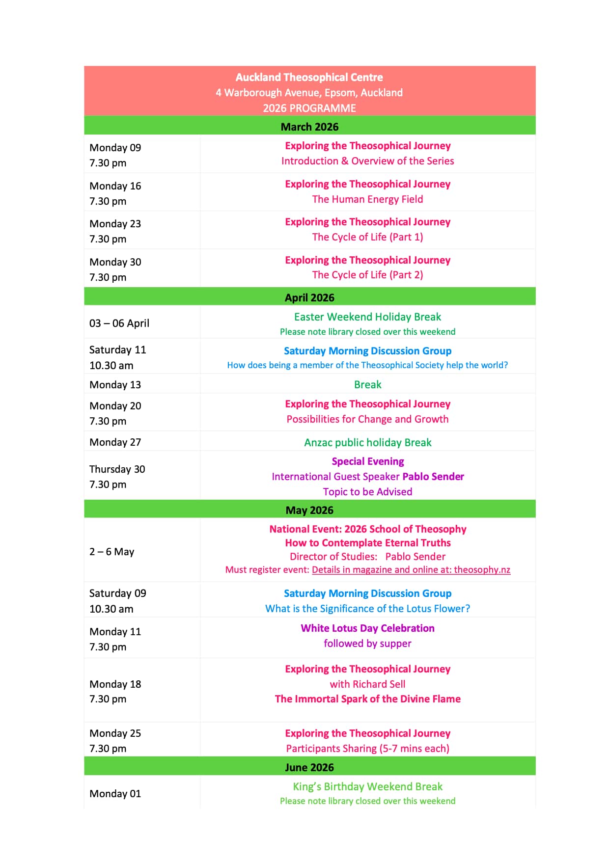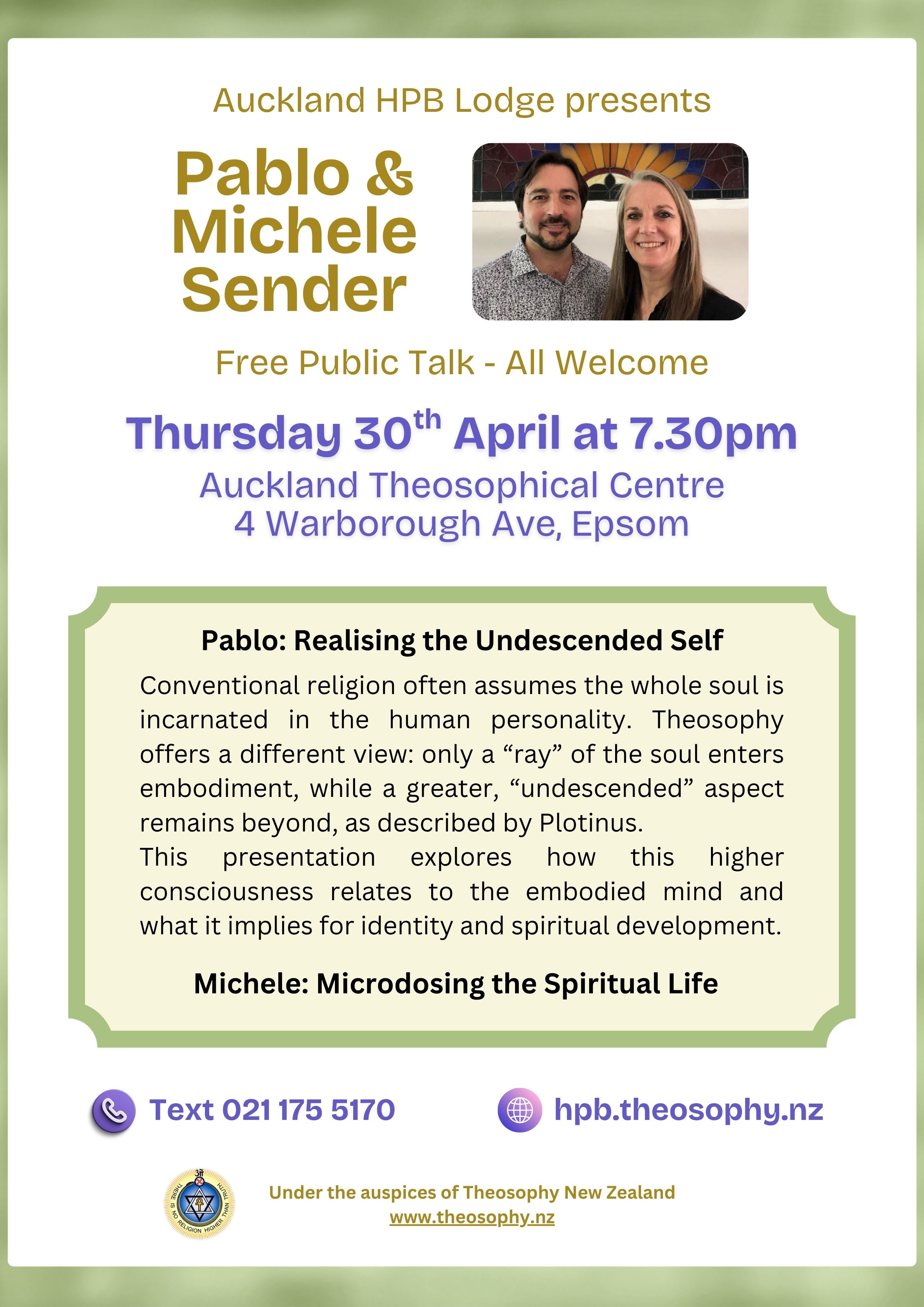 The Theosophical Society was established in Auckland in 1892 with the objective of promoting the exploration of Theosophy in our local community here in Auckland.